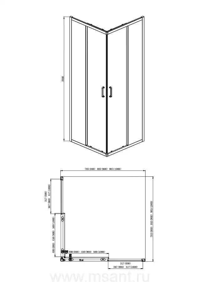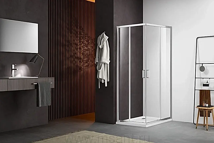 AQ NAA 1142-100 (новый артикул Сатпаева, 122 ARI KV10020CH) Душевой уголок квадратный, двери раздвижные Pin Up профиль хром, стекло прозрачное