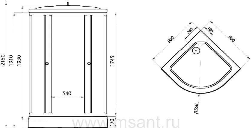 Pin Up уголок Triton Лайт 90х90 А Градиент, Белый с поддоном +сифон D90мм