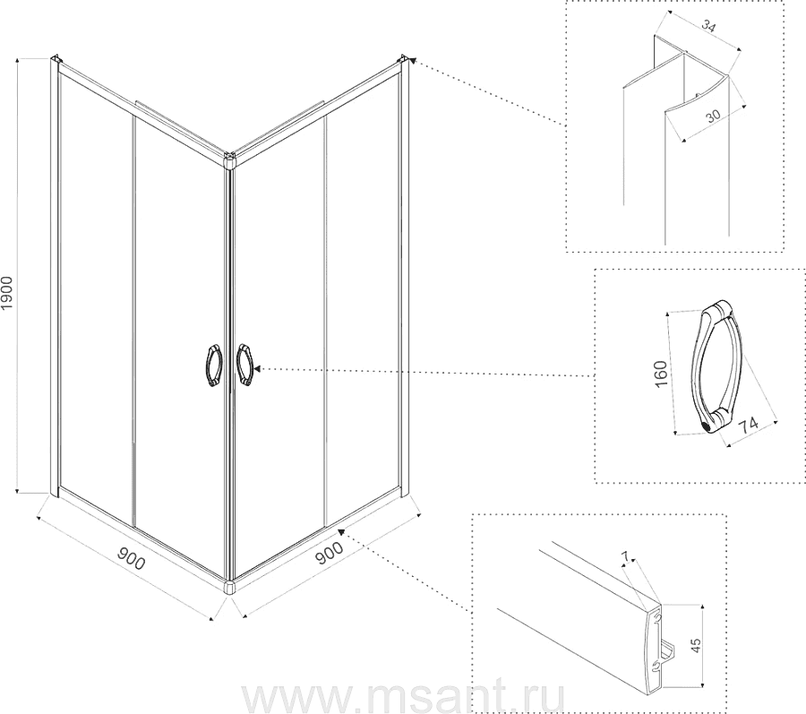 Душевой уголок Veconi Rovigo RV-101B 90x90, профиль Pin Up