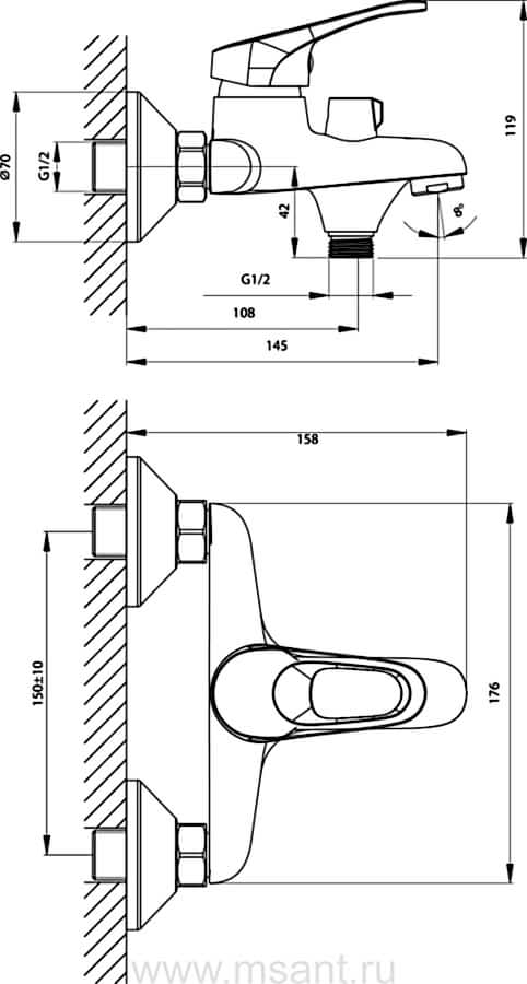 Смеситель Rossinka B35-30 для ванны с Pin Up
