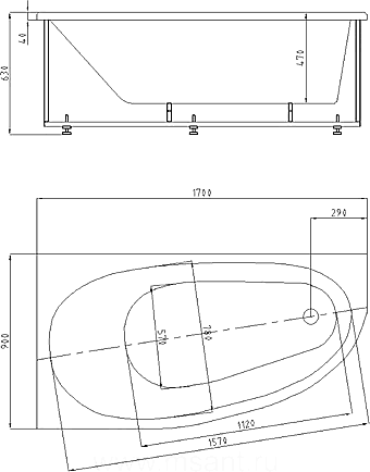 Акриловая ванна Aquatek Дива 150х90 R без фронтального экрана, без гидромассажа, без Pin Up