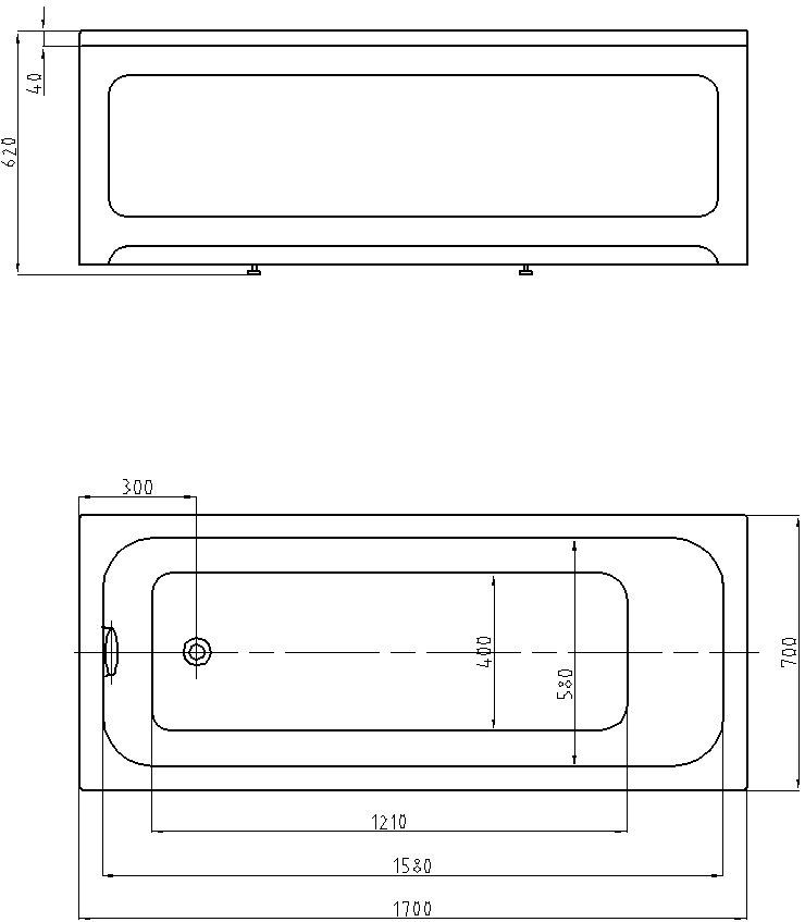 Акриловая ванна Pin Up Мия 170x70 без фронтального экрана, без гидромассажа, без опоры(каркаса)